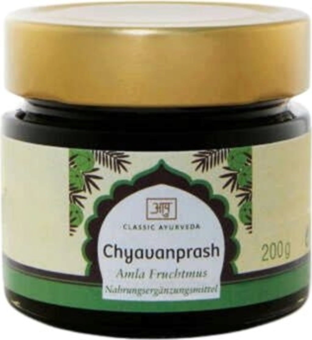 Amla is an ingredient in traditional Ayurvedic Chyavanprash or fruit puree. The Indian gooseberry is considered sacred and is said to have superfood powers. This Chyavanprash is produced according to a traditional recipe and is specifically tested for harmful substances before bottling.