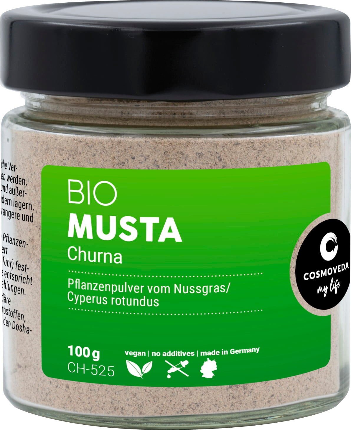 Musta - Cyperus rotundus - is a perennial 30-40 cm high reed grass with 4-7 mm wide leaves and a bulbous rhizome, which is used in the Ayurvedic diet.