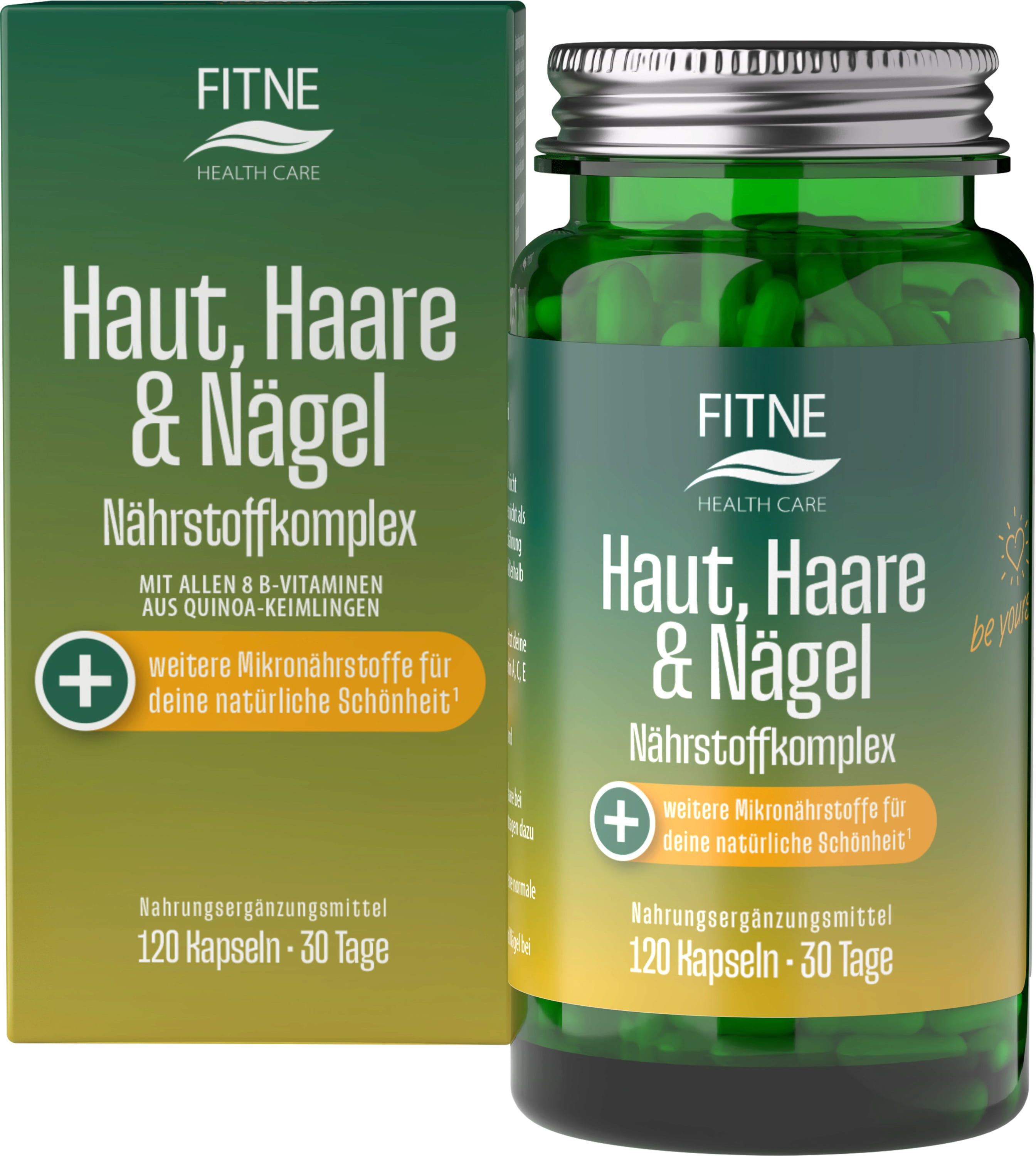 These capsules from FITNE are formulated with a selection of micronutrients to support your daily routine. Zinc and selenium contribute to the maintenance of normal hair and nails. Along with vitamins A, B2, B3, and biotin, zinc also contributes to the maintenance of normal skin. Vitamins C and E, and the trace elements zinc and selenium, help protect cells from oxidative stress. The product also contains silicon from bamboo extract and is suitable for a vegan diet.