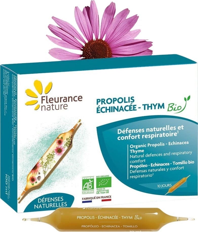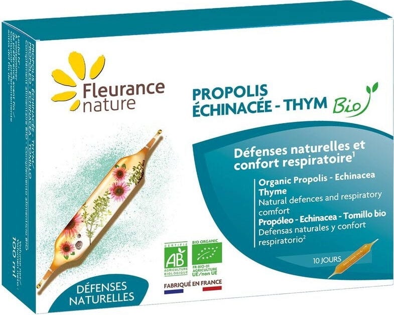 Fleurance Nature Organic Propolis, Echinacea and Thyme, 10 ampoules