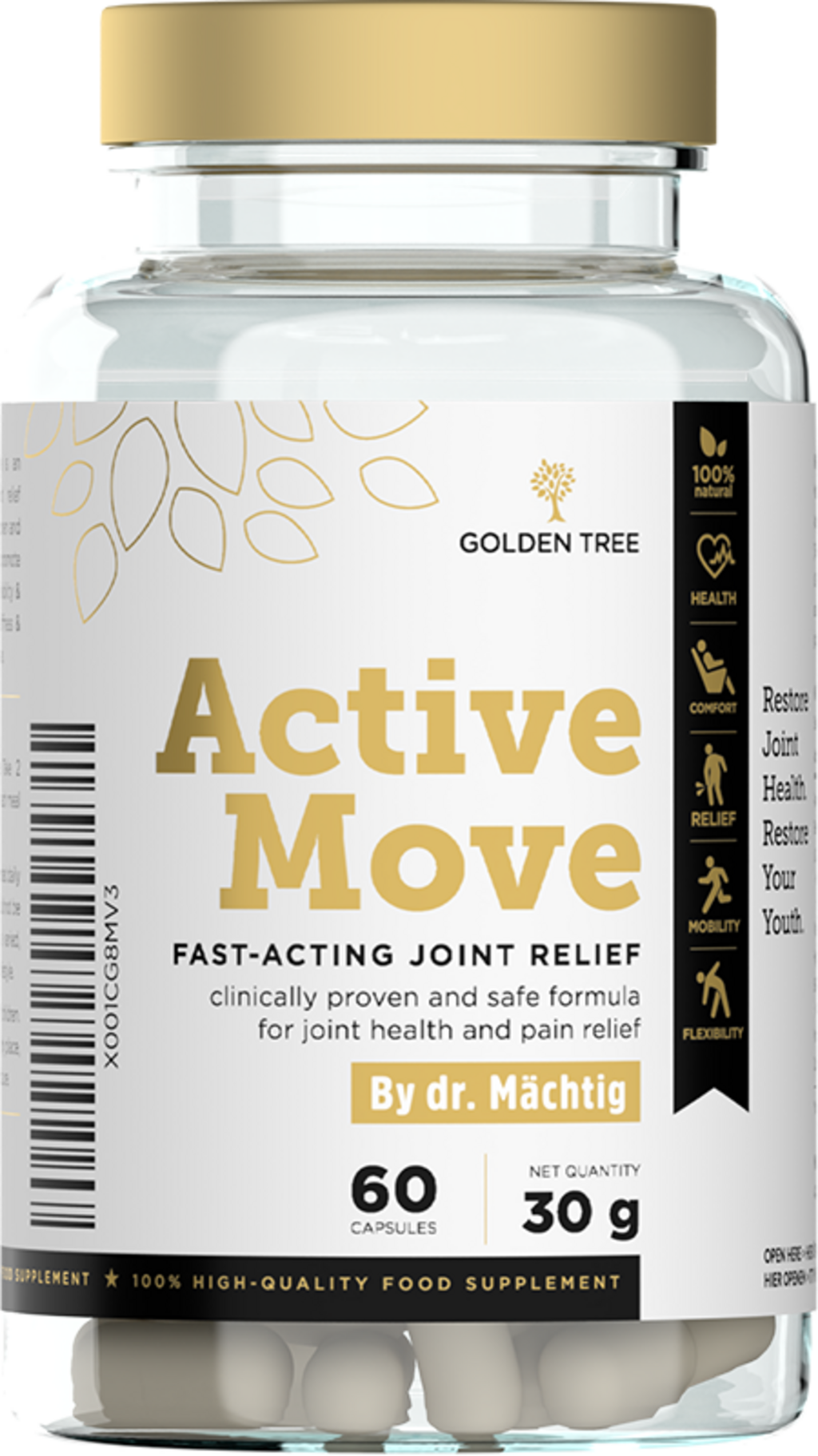 Active Move from Golden Tree is a high-quality combination of carefully selected ingredients in easy to take capsules. The formulation combines AprèsFlex® frankincense extract, Belinal® silver fir twig extract, UC-II® collagen complex, hyaluronic acid, vitamin C and minerals such as manganese and copper. The formula is supplemented with BioPerine® pepper extract for optimum absorption.