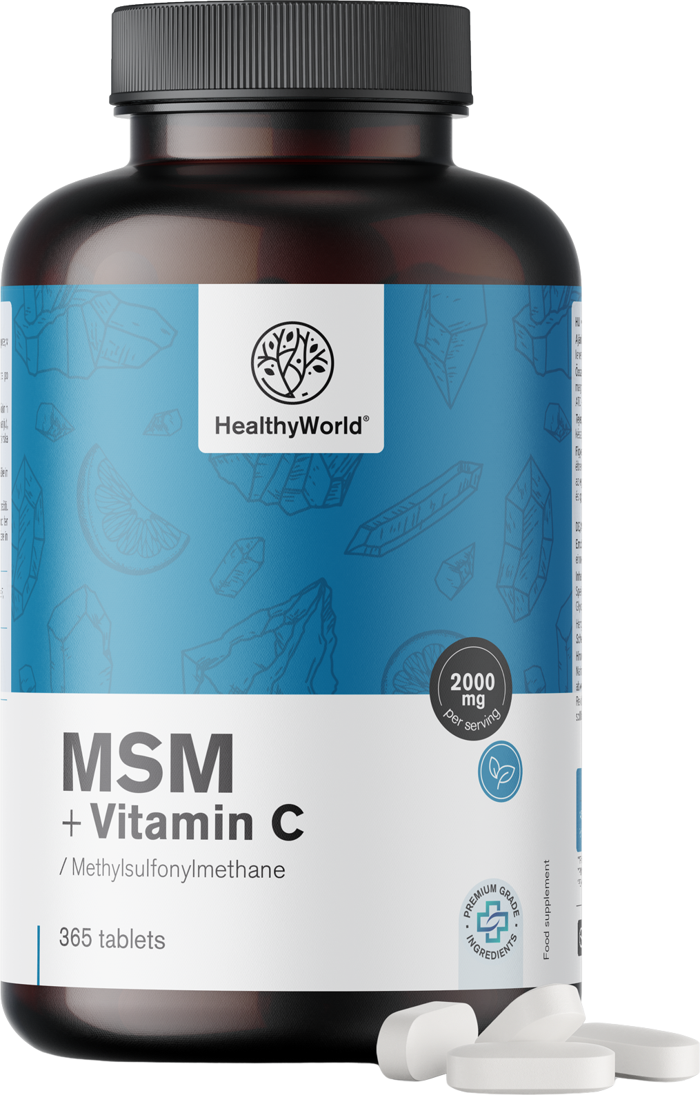 HealthyWorld MSM 2000 mg + Vitamin C, 365 tablets