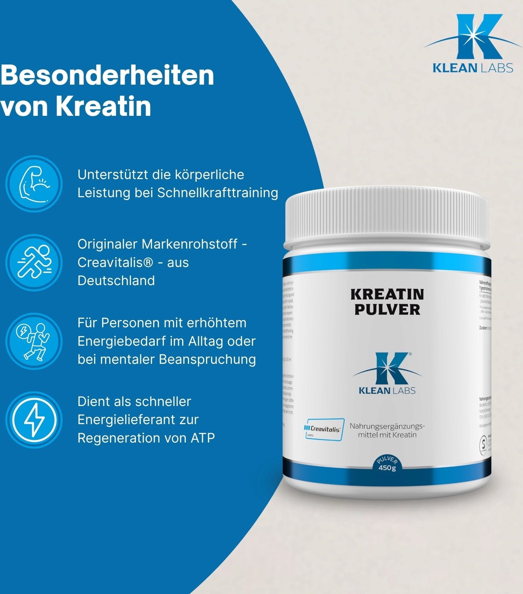KLEAN LABS Creatine Powder Creavitalis®, 450 g
