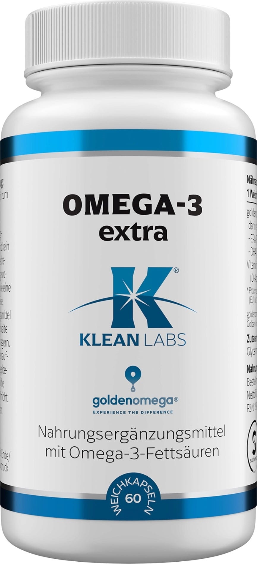 Supplement your diet with the polyunsaturated fatty acids EPA and DHA with Omega-3 extra by KLEAN LABS. Each capsule provides 1000 mg of fish oil with a high proportion of EPA (400 mg) and DHA (300 mg).
