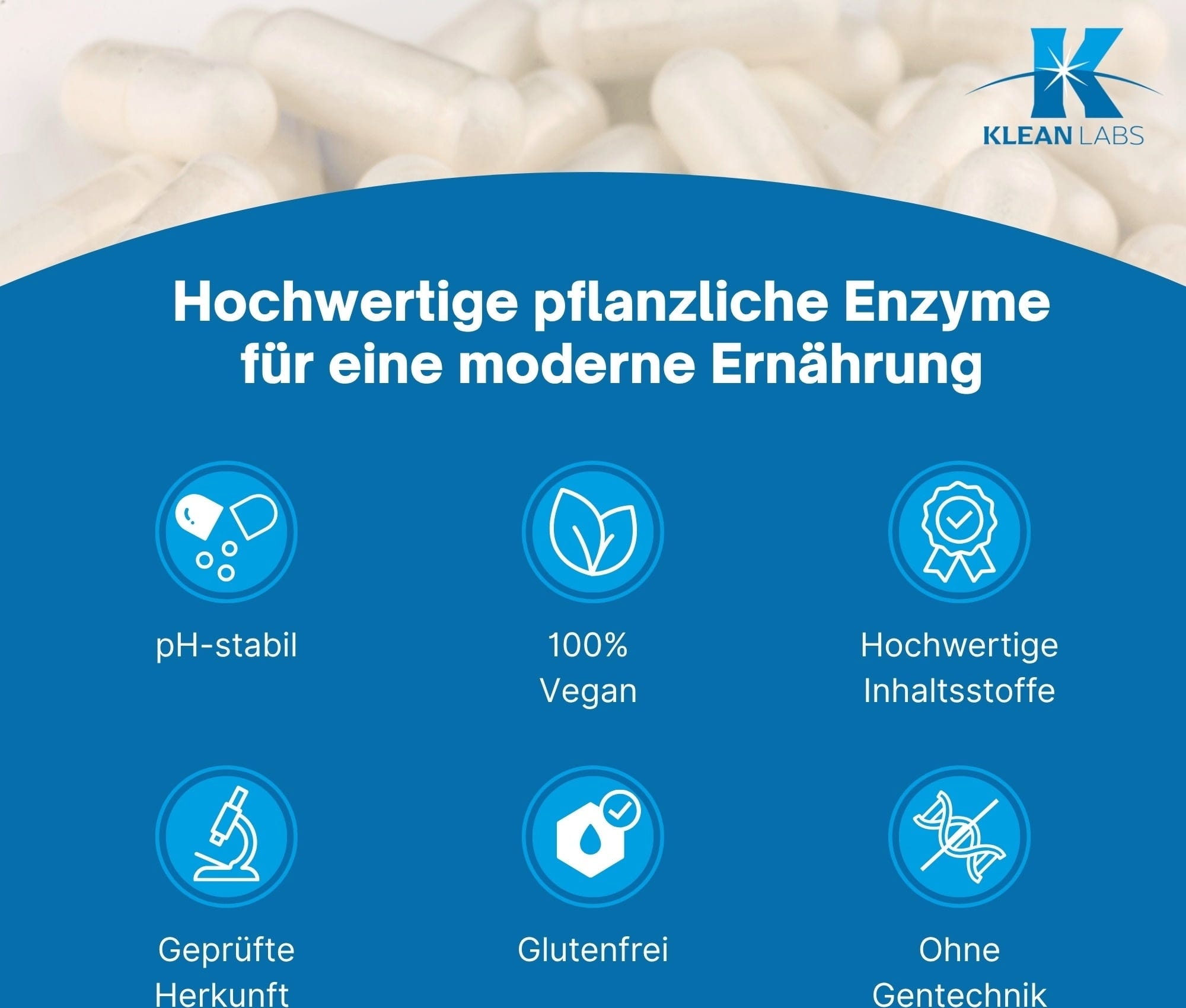 Protease, Enzyme blend, Capsule shell (Filler, Hydroxypropyl Cellulose, Bacillus subtilis)