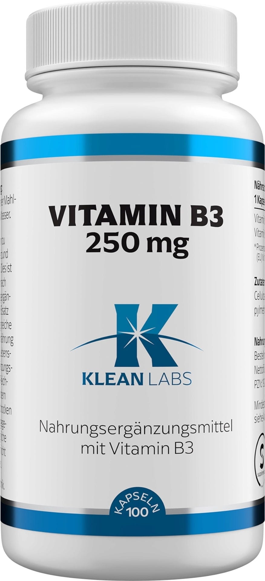KLEAN LABS Vitamin B3 250 mg, 100 capsules