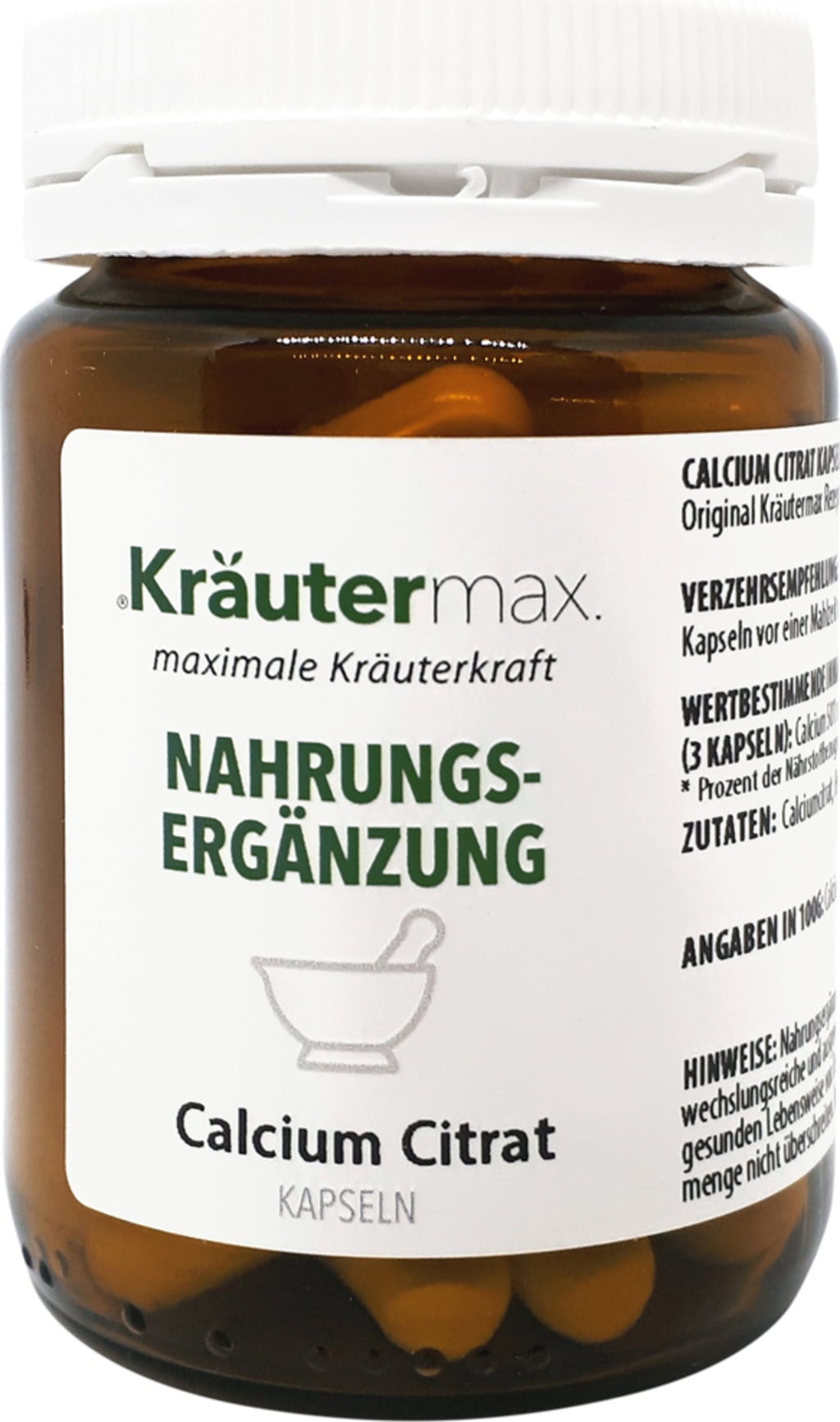 The calcium citrate capsules were prepared according to the original Kräutermax recipe and were tested by specialized staff.