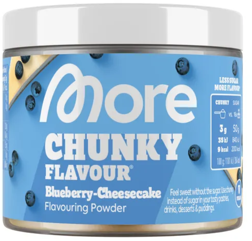 Save on sugar, not flavour - 3 g of Chunky Flavour replaces 50 g of sugar! Chunky Flavour by More Nutrition is a delicious flavour powder that adds a flavourful sweet taste to your food and drinks and has 6 to 12 kcal per portion!