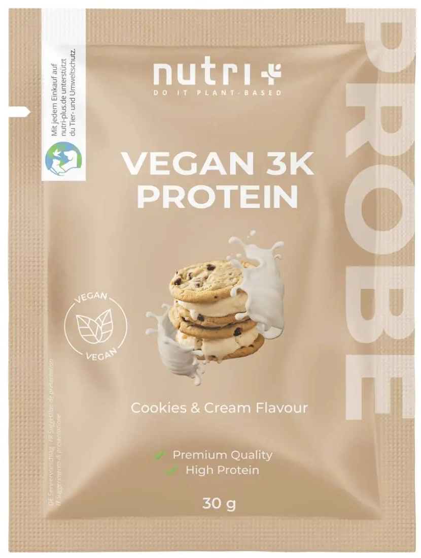 nutri + Vegan 3K Protein Powder, Trial Size, Cookies & Cream Flavour (30 g)