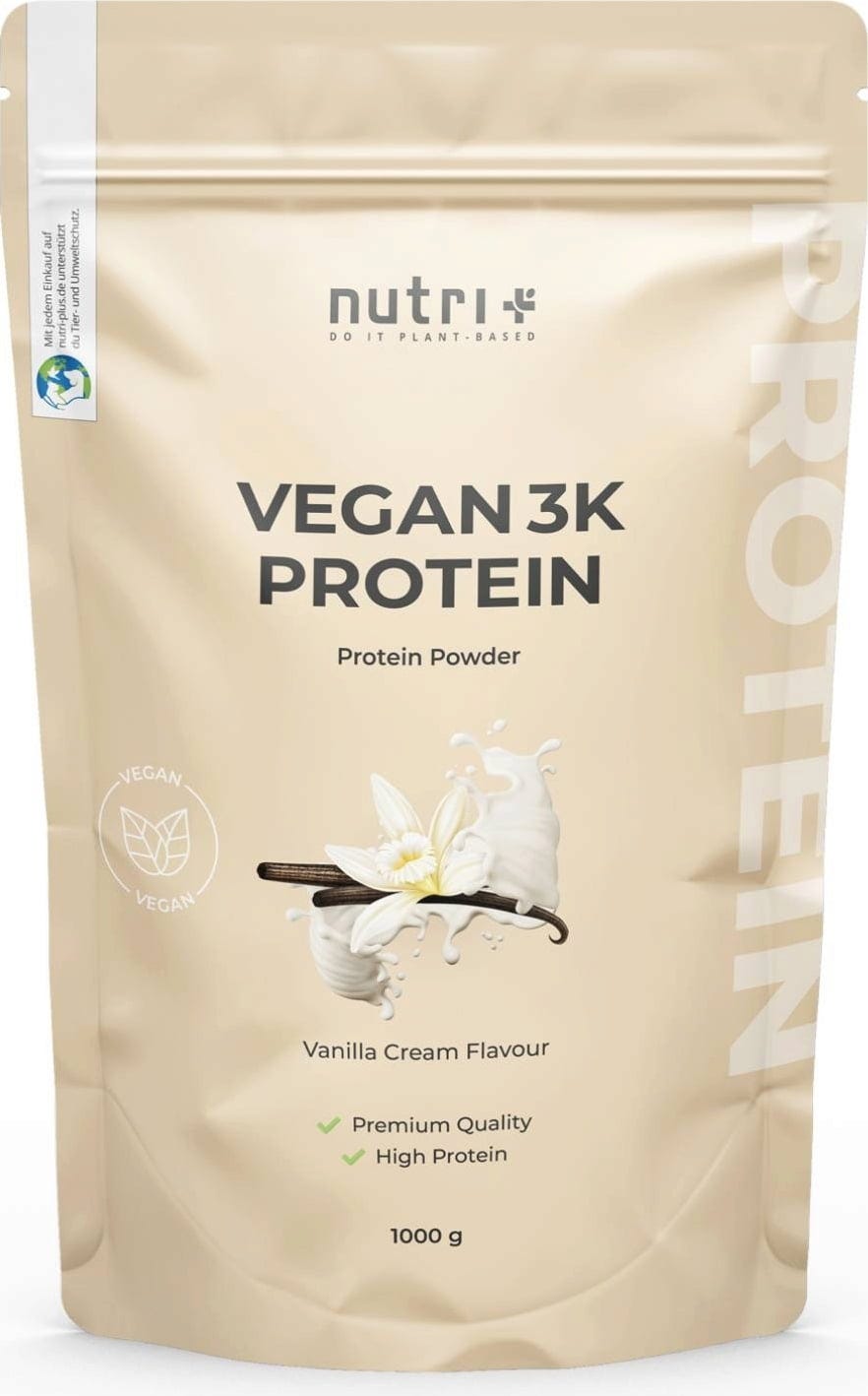 nutri + Vegan 3K Protein Powder, Vanilla-Cream Flavour (1.000 g)