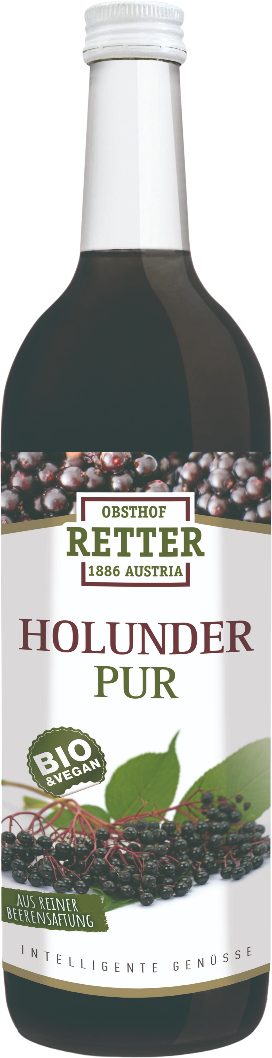 Elderberries ripen to a glossy black in August and September. They are not suitable for consumption when raw. But you can enjoy the delicious and refreshingly fruity taste with the organic elderberry juice from Obsthof Retter. The juice is rich in vitamins C and B. It is naturally free from artificial flavourings, colourings and preservatives.