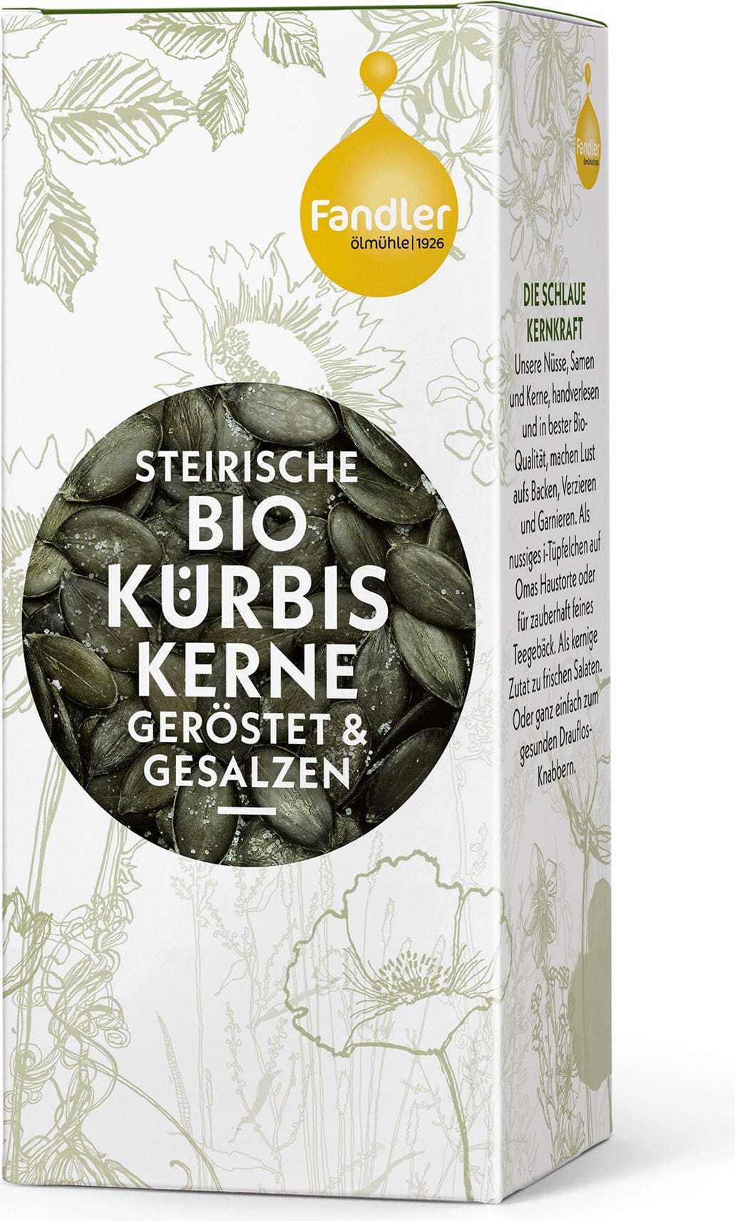 Fandler's roasted and salted organic pumpkin seeds from Styria are perfect as a snack. They also add a wonderful flavour to salads, soups, casseroles, spreads and more. A delicious addition to every kitchen pantry!