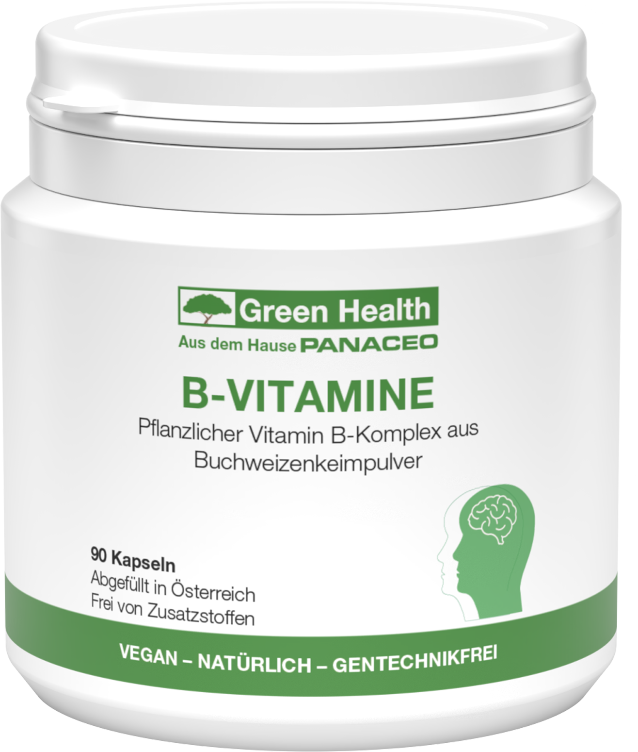 The Green Health B-Vitamins capsules by Panaceo contain all B vitamins. As B vitamins are water-soluble, your body cannot store them. That's why supplementing your diet daily with these capsules is a good idea - especially when you're stressed, you need more energy than usual, are doing intensive workouts or are on a vegetarian/vegan diet.