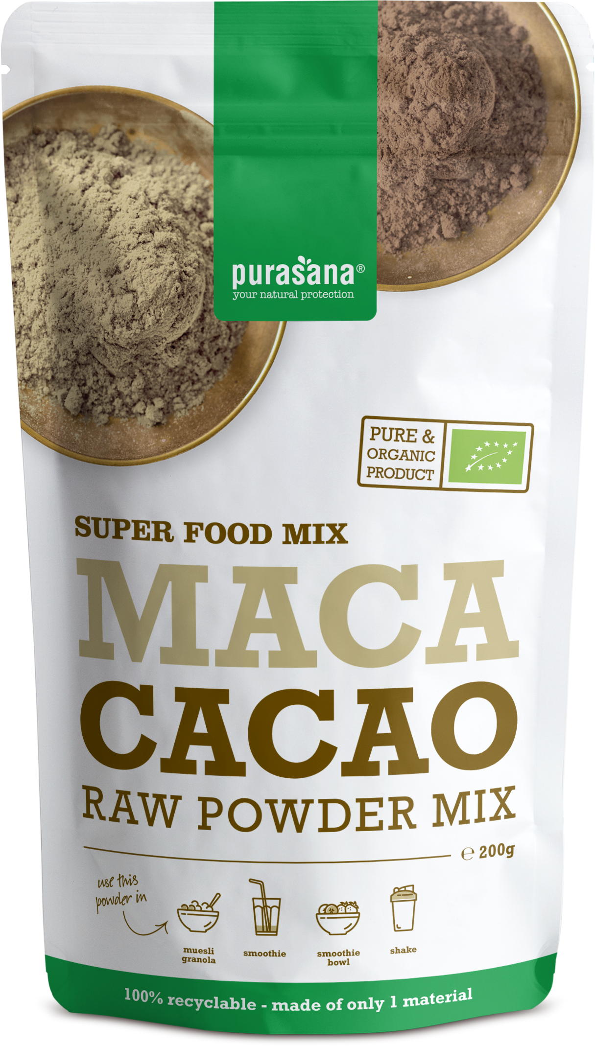 Purasana Organic Maca-Cocoa Mixture, 200 g