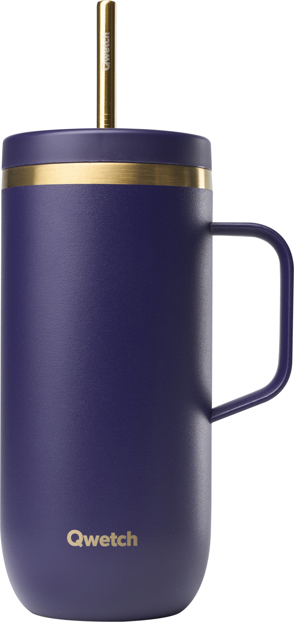 Qwetch Insulated Cold Cup with Handle, 600 ml, Deep Purple & Gold
