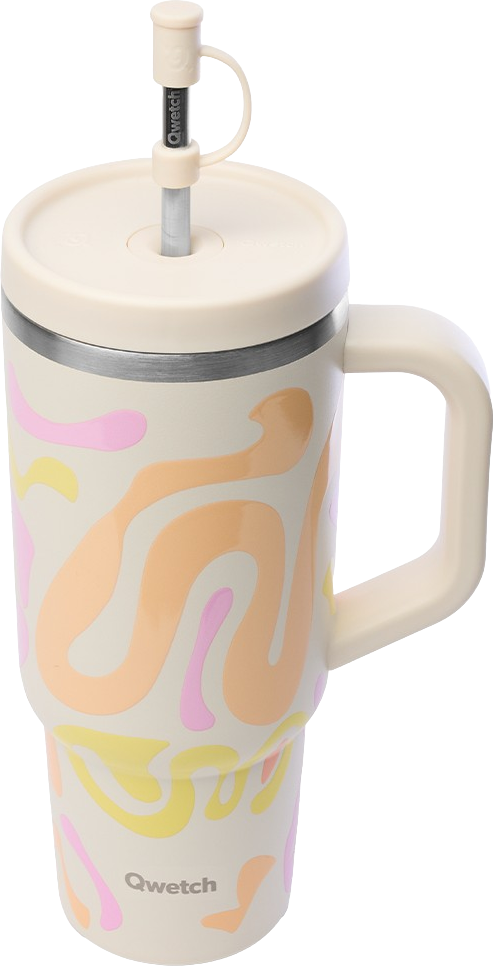 Qwetch Insulated Travel Cup Inox - Waves - 900 ml, Sable
