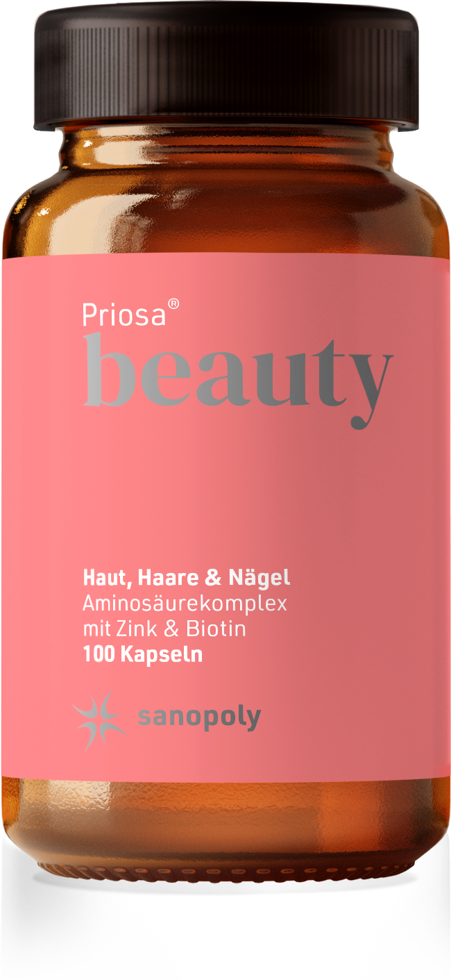 Priosa®BEAUTY is a vegan supplement containing a diverse combination of different vitamins, minerals and amino acids. In addition, it is produced without flavour enhancers, artificial dyes and preservatives. It does not contain milk powder.