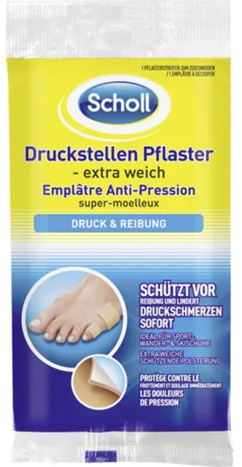 The extra-soft Pressure Point Foam Padding by Scholl protects the heels and toes from pressure and friction. The plasters are ideal for protecting the feet when doing sports, hiking or wearing ski boots.