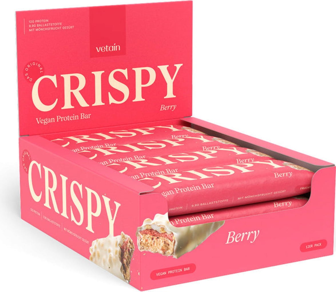 Vetain CRISPY Vegan Protein Bars, Pack of 12, Berry (12 bars)